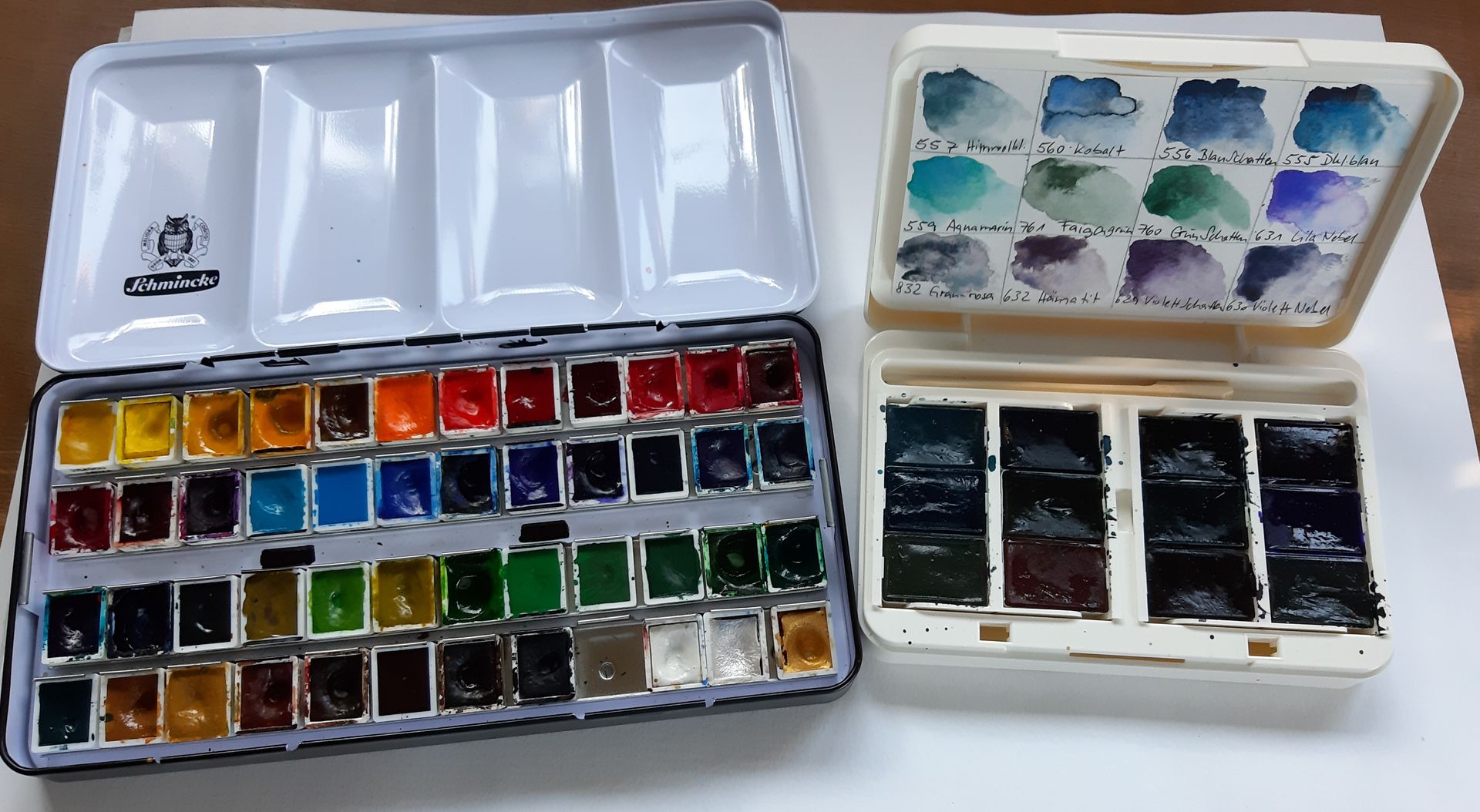 Utilizo acuarelas Schminkcke Horadam de alta calidad.