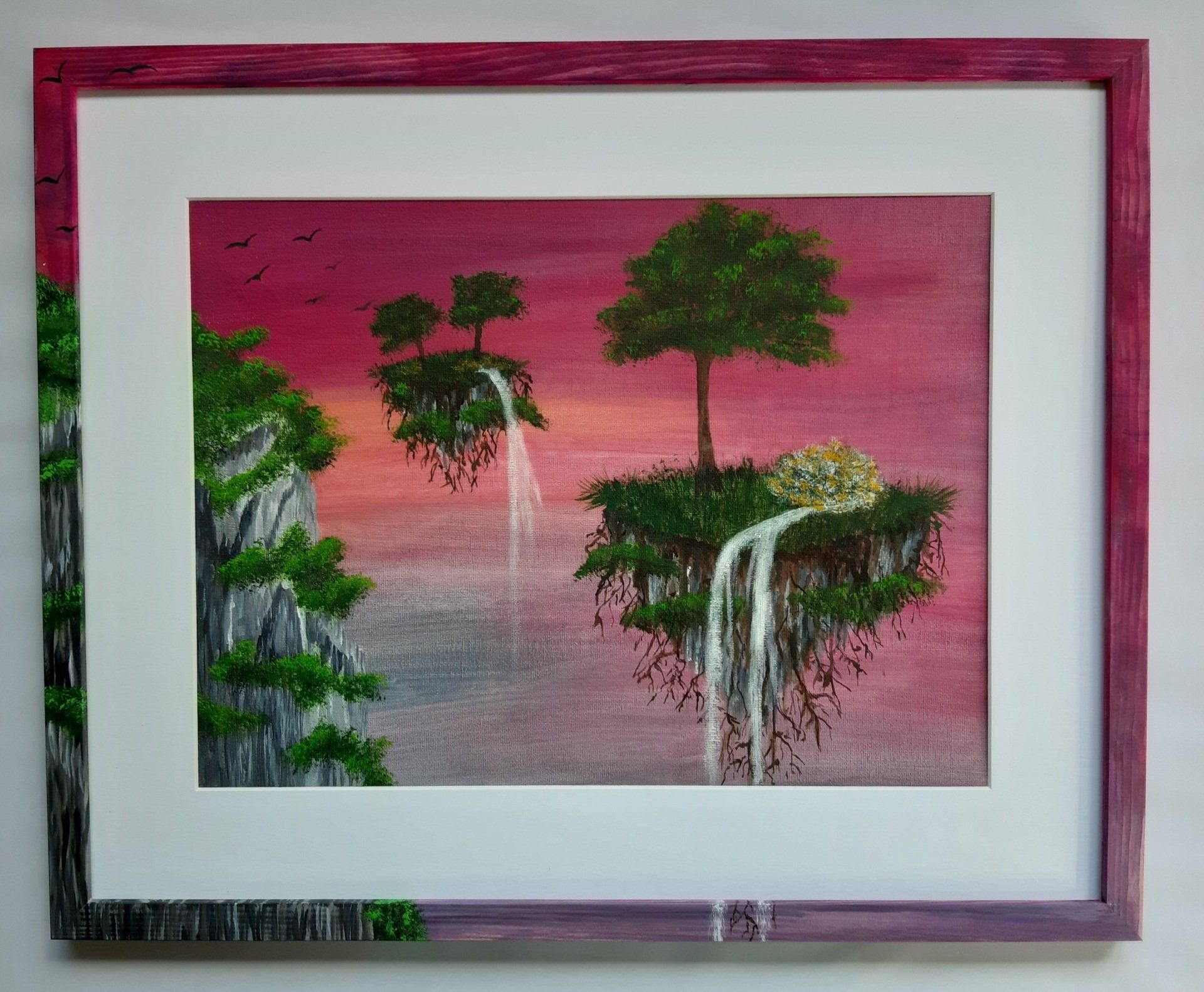 Isla flotante con arboles(30x40) con marco (dimensiones exteriores 43 cm x 53 cm) 145 €