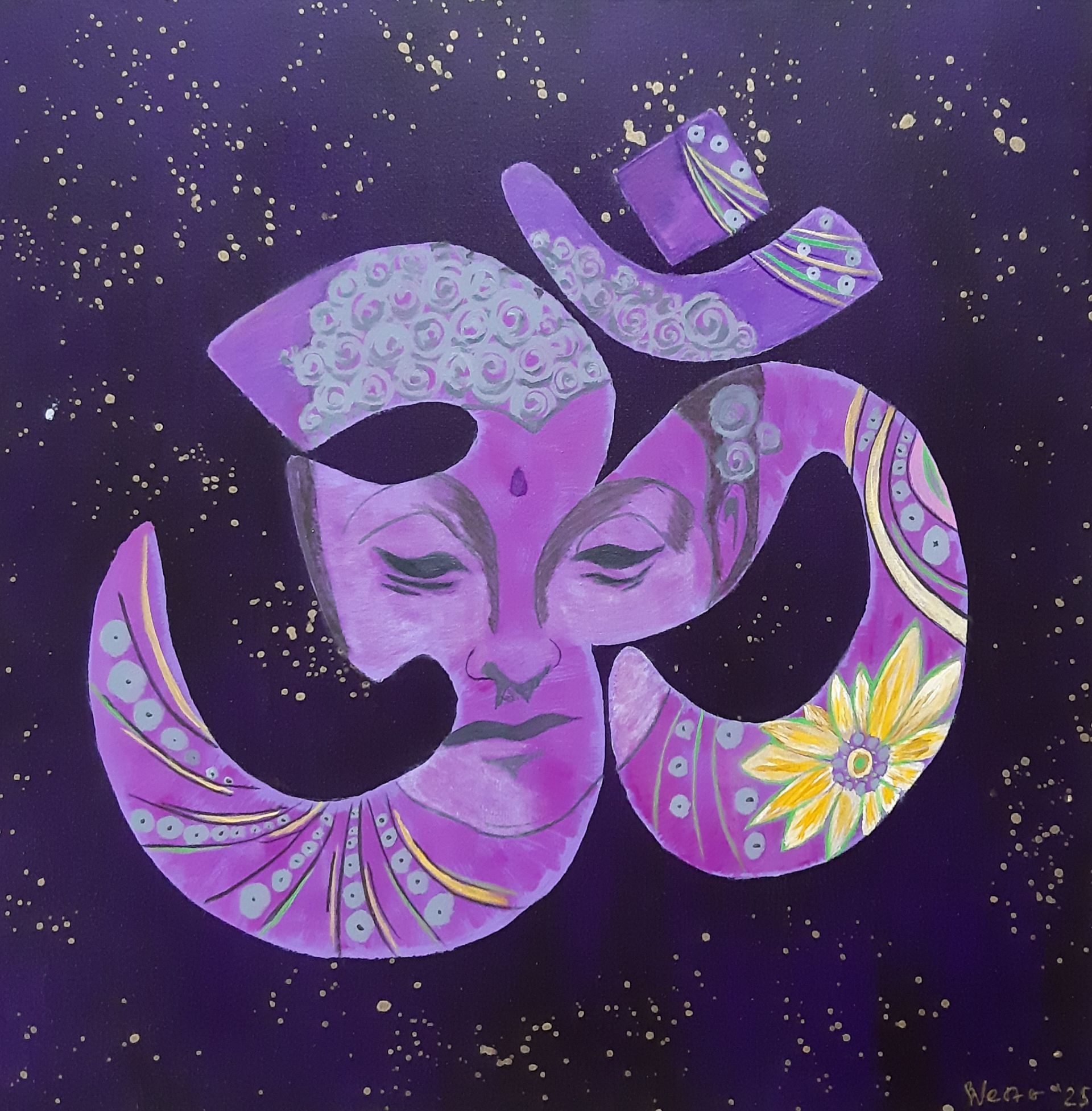 Om es una sílaba sagrada (AUM) y simboliza la esencia del ser, el nacimiento, la vida y la muerte.