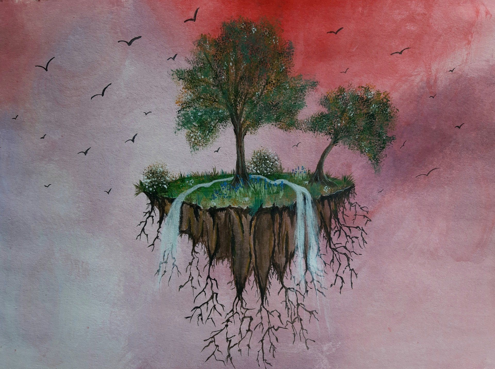Schwebende Insel mit Bäumen 29,6 cm x 41,6 cm