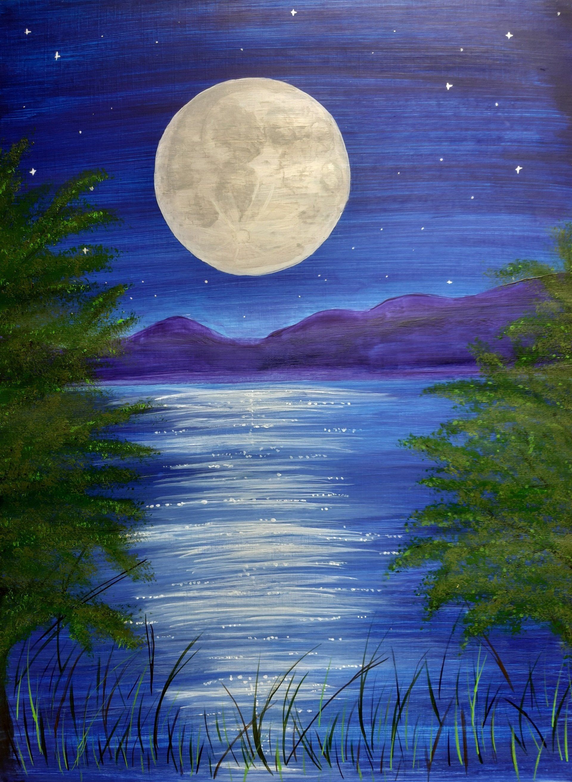 Vollmond am See 42 cm x 59,4 cm mit Rahmen (Außenmaße 53 cm x 63 cm) 245 €