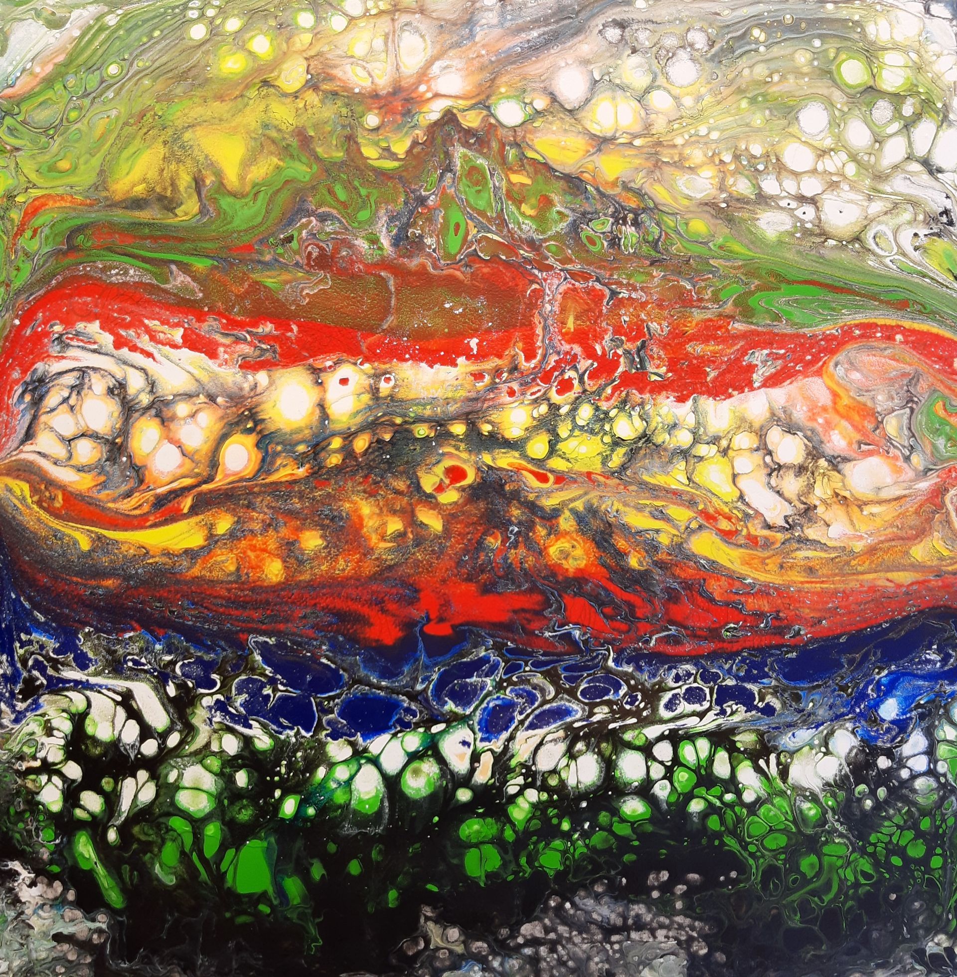 Beim „Pouring“ werden Acrylfarben gegossen (engl. pour) und nicht mit dem Pinsel aufgetragen.