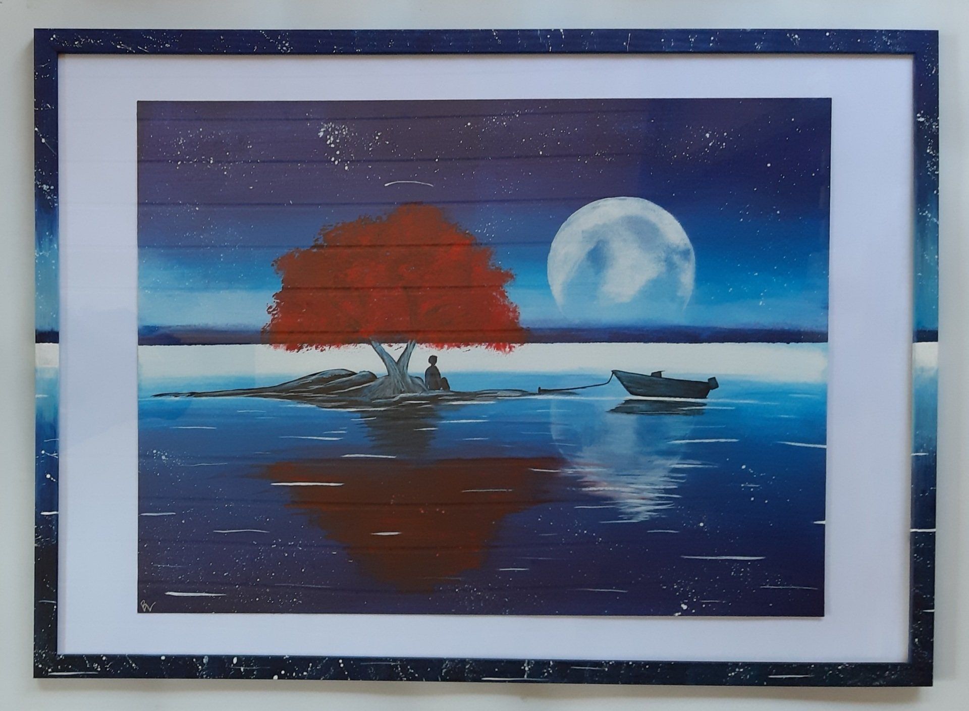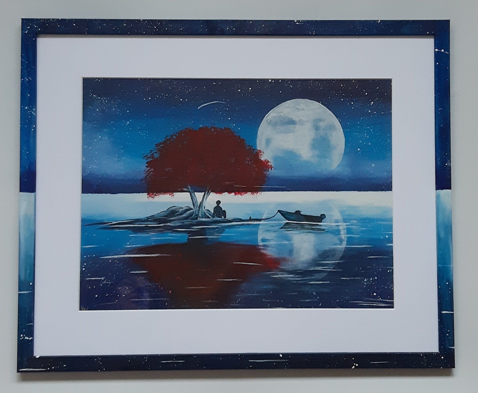 Roter Baum mit Vollmond (nach einer Idee von Dranitsin) (42x56) mit Rahmen (Außenmaße 53 cm x 73 cm)