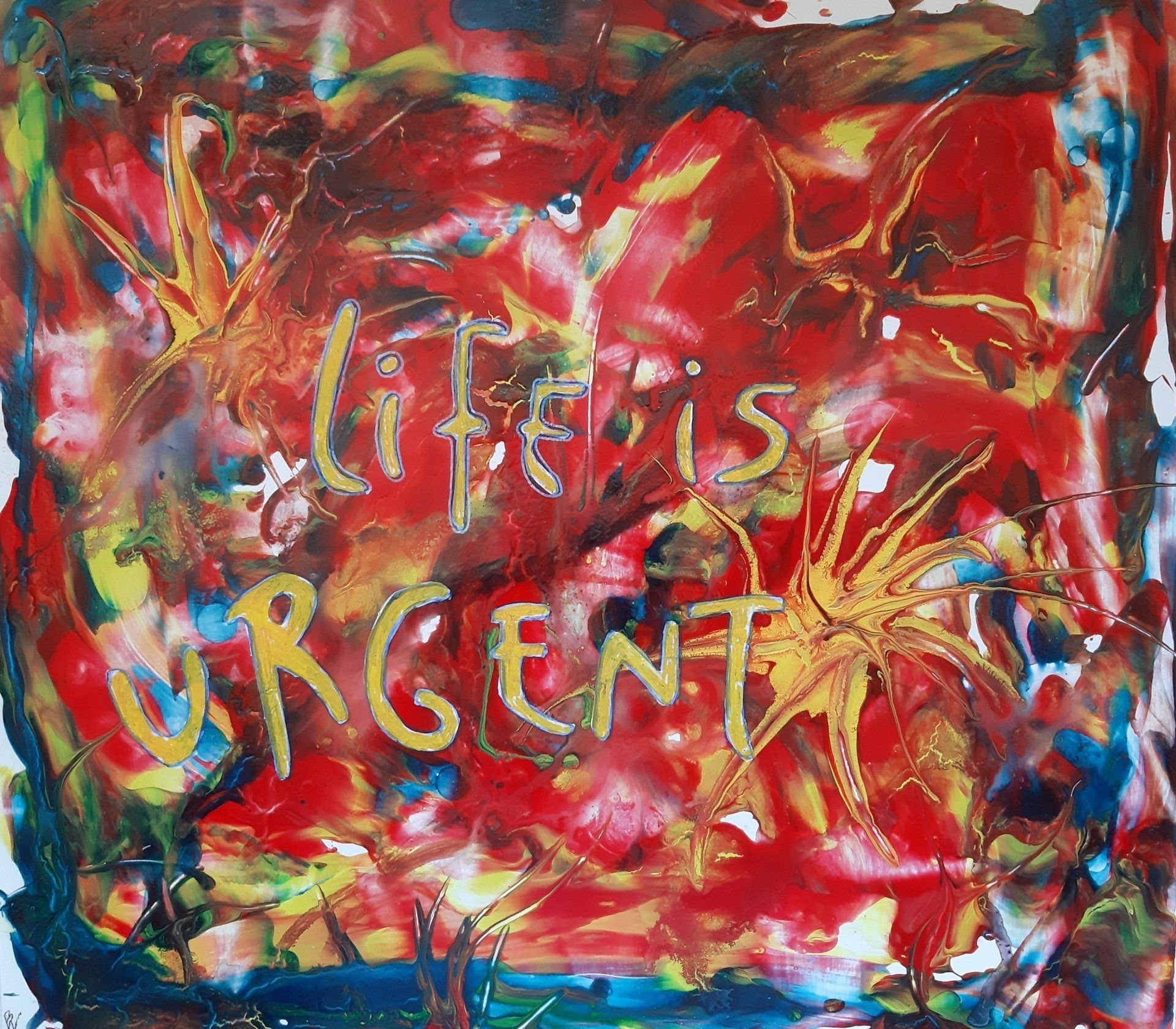 Life is urgent 38 cm x 33,5 cm (Holzplatte)